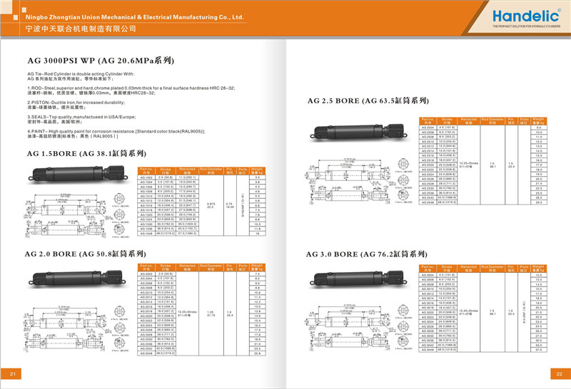 為適應(yīng)市場(chǎng)對(duì)高品質(zhì)工業(yè)標(biāo)準(zhǔn)油缸的需求,中天公司近期推出了“海德力克”品牌系列標(biāo)準(zhǔn)油缸,產(chǎn)品涉及拉桿油缸和焊接型雙作用油缸。該系列產(chǎn)品結(jié)構(gòu)簡(jiǎn)單,客戶可按需求自行選購(gòu)行程、缸徑、工作壓力等并安裝。“海德力克”系列產(chǎn)品全部采用高品質(zhì)進(jìn)口密封件,高品質(zhì)原料,并且嚴(yán)格按照國(guó)際標(biāo)準(zhǔn)精工制作。“海德力克”承諾提供多達(dá)18個(gè)月的質(zhì)量保證,并提供專業(yè)安裝指導(dǎo)和技術(shù)支持,歡迎選購(gòu)。
